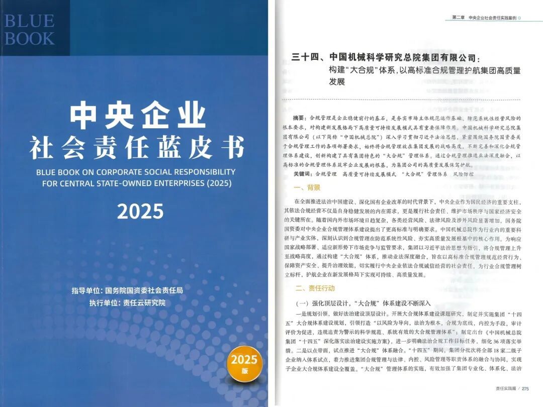 会上,《中央企业社会责任蓝皮书(2025)》正式发布,集团“构建大合规体系,以高标准合规管理护航集团高质量发展”案例成功入选。