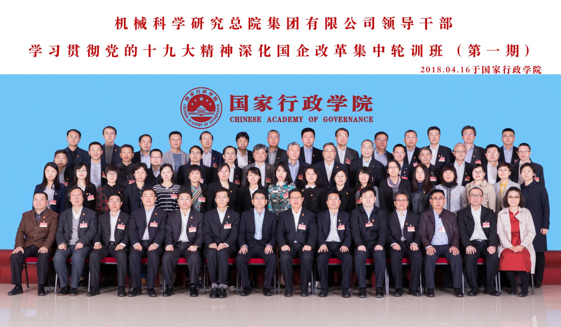 4月16日至4月20日,机械总院集团领导干部学习贯彻习近平新时代中国特色社会主义思想和党的十九大精神、深化国企改革集中轮训班(第一期)在国家行政学院成功举办。机械总院集团党委书记、董事长、总经理王德成,各单位董事长、党委书记、总经理,集团总部各职能部门主要负责人以及各单位党群、人事、纪检部门主要负责人参加了培训。